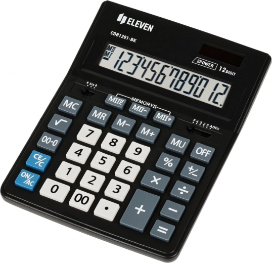 Questa calcolatrice ELEVEN nera combina il chiaro display a 12 cifre con la sicurezza dell'alimentazione duale, funzionando in modo affidabile sia alla luce del giorno sia in assenza di essa. Cifre grandi e leggibili e un comodo layout dei tasti velocizzano i calcoli quotidiani in ufficio, a scuola e a casa.