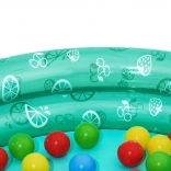 Nella confezione sono incluse 50 palline colorate, così la piscina si trasforma facilmente in un parco giochi a secco per divertirsi tutto l’anno. Le valvole di sicurezza aiutano a mantenere l’aria all’interno e il doppio anello offre un supporto stabile per sedersi e giocare.