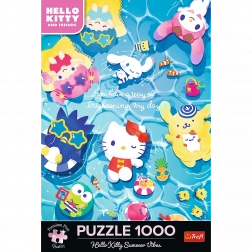 Goditi il piacere di comporre il puzzle Hello Kitty Sull'Onda Estiva di Trefl! Questo puzzle è noto per la sua alta qualità, forme uniche dei pezzi e approccio ecologico.