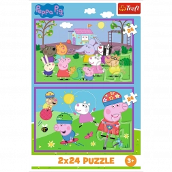 Il set di puzzle 2x24 è un grande divertimento per i bambini, contiene due puzzle con 24 pezzi con il tema del personaggio amato Peppa Pig, ideale per giocare insieme.