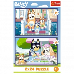 Allegra Bluey sono puzzle che raffigurano i personaggi del cartone animato Bluey. Ciascun puzzle compone un'immagine di dimensioni 275x180 mm.