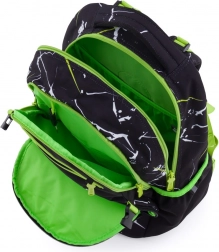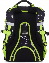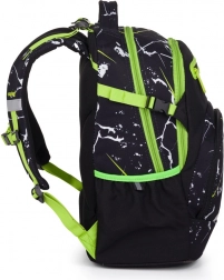 Zaino scolastico leggero e resistente Oxy Ombre Electric per bambini dalla 3ª classe, che combina schienale anatomico, spallacci imbottiti e cintura pettorale per un trasporto confortevole. Offre due scomparti spaziosi, tasche laterali per la borraccia, una pratica taschina frontale per la merenda e elementi riflettenti per la sicurezza. Il fondo rigido garantisce stabilità quando viene appoggiato.