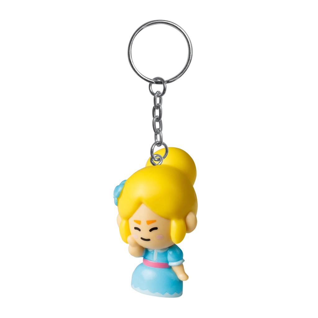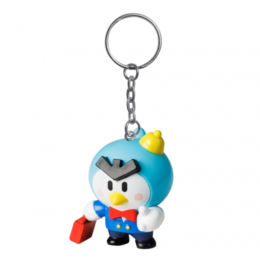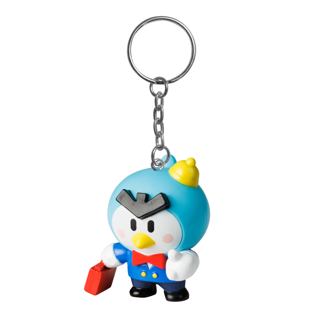 Un robusto anello metallico con una corta catenella tiene saldamente su chiavi e cerniere dello zaino. Il corpo della figurina è in plastica resistente, adatta all’uso quotidiano.