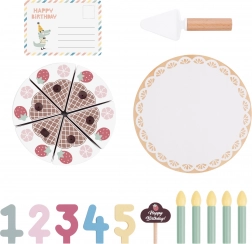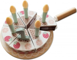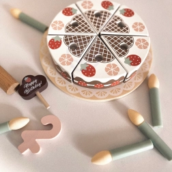 La torta di compleanno in legno dall’invitante design “fragola e cioccolato” è perfetta per cucine giocattolo e festicciole. Le sei fette tagliabili si uniscono tramite solido velcro, così i bambini possono facilmente porzionare e ricomporre la torta. Inclusi candeline, numeri 1–5, cartoncino di auguri e paletta per servire.