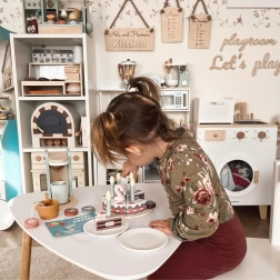 La graziosa torta di compleanno in legno di TOOKY TOY offre ai bambini ore di gioco creativo. Il set include 20 pezzi, tra cui candeline, numeri 1–5, cartoncino “Happy Birthday” e una paletta per servire. Le singole fette si uniscono con il velcro, garantendo un facile “taglio” e riassemblaggio. Perfetto per lo sviluppo della motricità fine, la cooperazione e l’apprendimento dei numeri durante il gioco della festa.