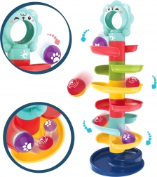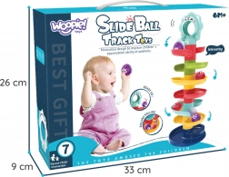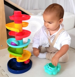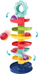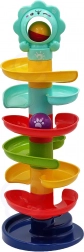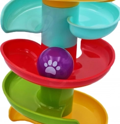 Questo originale kulodrom del marchio Woopie è un elemento di intrattenimento ideale per i bambini a partire da 6 mesi di età. Grazie alla torre a spirale, i bambini possono seguire le palline che rotolano dall'alto verso il basso, il che li aiuta a sviluppare le loro competenze di coordinazione e il monitoraggio visivo. Le dimensioni e il peso delle palline sono ideali per le piccole mani dei bambini, rendendo facile la manipolazione.