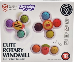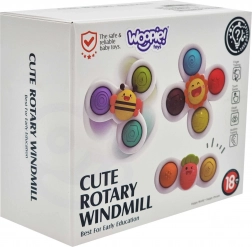 Il set WOOPIE include tre simpatici spinner a forma di sole, ape e carota. Grazie ai cuscinetti resistenti, i giochi ruotano in modo fluido e a lungo, mentre gli elementi in gomma colorata invogliano i bambini a premere e a scoprire diverse texture. Le ventose permettono di fissare facilmente i giochi su superfici lisce: finestra, piastrella, vasca o tavolo.