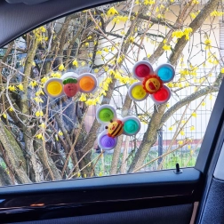 Si fissano facilmente a finestra, piastrelle, vasca o tavolo. Divertimento ideale in auto e in bagno: lo spinner resta fermo e il bambino può giocare in sicurezza.