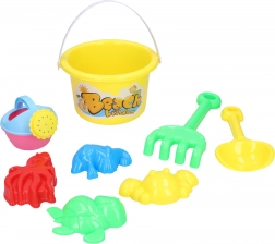 - 8 pezzi inclusi: secchiello con immagine, paletta, annaffiatoio, rastrellino e 4 formine
