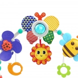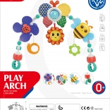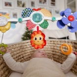 WOOPIE arco con giocattoli è progettato per offrire ai bambini non solo divertimento ma anche sviluppo. Sull'arco troverai diversi giocattoli, come una giostrina a giro con coccinella che ruota e vibra al movimento, un sole fischiabile quando premuto, un sonaglio farfalla con sfera trasparente contenente palline colorate che saltano, e materiali scricchiolanti che arricchiscono l'esperienza sensoriale dei bambini.
