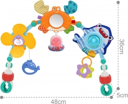 Arco giochi con giocattoli del marchio Woopie è la soluzione ideale per il divertimento e lo sviluppo del tuo bambino. Questo arco colorato è dotato di diversi giocattoli ispirati al mondo marino, come girella con pinguino, specchio granchio, polipetto, sonaglio squalo e delfino pendente. I giocattoli stimolano l'interazione del bambino e aiutano a sviluppare le sue capacità sensoriali e motorie.