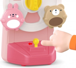 Il bambino avvia il movimento con la levetta/il comando e osserva le figure che ruotano. Il principio interattivo rafforza la coordinazione occhio–mano e prolunga il tempo di gioco.