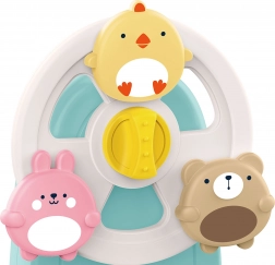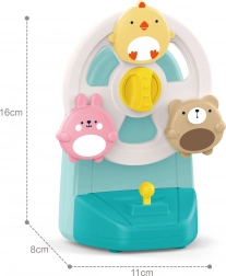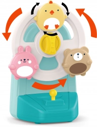 Il bambino aziona facilmente il meccanismo rotante tramite il comando giallo, osserva il movimento degli animaletti e allena la motricità fine e la coordinazione occhio–mano.
