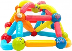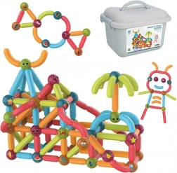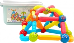 Questo colorato set di costruzioni magnetico WOOPIE è ideale per bambini dai 3 anni in su. I pezzi sono grandi, robusti e arrotondati, così da essere comodi da tenere nelle manine. Le sfere metalliche e le bacchette magnetiche di diverse lunghezze e forme permettono di creare modelli fantasiosi – da forme semplici a strutture 3D più complesse.