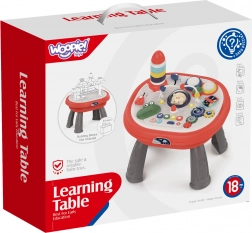 Tavolo educativo interattivo spazio del marchio WOOPIE è destinato ai bambini dai 18 mesi in su. Questo tavolo favorisce lo sviluppo della coordinazione, delle capacità motorie e cognitive grazie a vari elementi interattivi.