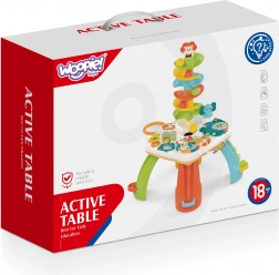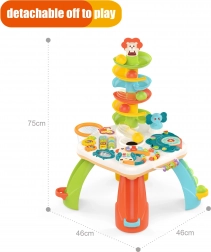 Il tavolino interattivo per bambini combina un pannello educativo con elementi sensoriali e uno scivolo per palline. La sua realizzazione colorata e divertente attrae sia i maschietti che le femminucce. Il design per bambini del tavolo unisce il gioco all'apprendimento, aiutando a sviluppare abilità motorie e manuali, ascolto e comprensione del mondo. È un giocattolo ideale per stimolare lo sviluppo del bambino.