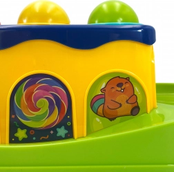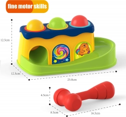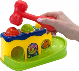 Con l'aiuto del martello, il bambino colpisce le sfere che scivolano lungo la pista. Il bambino può osservare come rotolano, offrendo tanto divertimento.