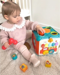 Ogni attività è curata nei dettagli per favorire diverse abilità come coordinazione occhio-mano, riconoscimento di forme e colori, sviluppo dell’udito ed espressione della creatività. Grazie alle dimensioni contenute, il cubo è facile da trasportare ma sempre ricco di divertimento senza fine per i piccoli esploratori che vogliono imparare giocando.