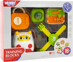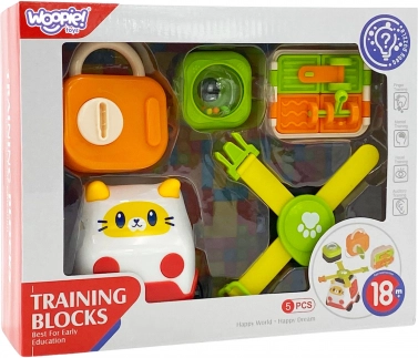 La dolce macchinina a forma di gattino del marchio Woopie con 4 cubi manipolativi agganciabili è un giocattolo interattivo per bambini dai 18 mesi. Sostiene lo sviluppo della motricità fine, la percezione sensoriale e la creatività grazie a elementi come serratura con chiavetta, finestrelle con chiusura, elemento girevole con palline e cinghie con fibbie. Facile aggancio e rimozione dei pezzi, materiali sicuri e resistenti.