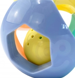 La struttura rotonda rotola facilmente e motiva il neonato al movimento. La struttura aperta aiuta ad allenare la presa e la coordinazione mano–occhio.