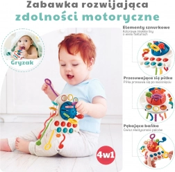 Questo giocattolo sensoriale WOOPIE BABY è progettato per incoraggiare naturalmente i neonati all’esplorazione autonoma. Grazie alla combinazione di diverse texture, forme e funzioni (tirare, schiacciare, ruotare), i bambini allenano la presa, la coordinazione mano-occhio e la concentrazione. Le parti morbide da mordere massaggiano delicatamente le gengive e offrono sollievo durante la dentizione.