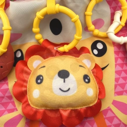 Le superfici fruscianti, i colori e le texture a contrasto favoriscono attenzione e concentrazione. I sonagli rimovibili e il morbido massaggiagengive alleviano il fastidio della dentizione e al contempo sviluppano la presa e la motricità fine. L’alta qualità costruttiva e i materiali sicuri rendono il cuscino un’ottima idea regalo per i neonati.