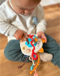 Il giocattolo sensoriale WOOPIE ispirato al metodo Montessori a forma di volpe è ideale per supportare lo sviluppo dei più piccoli. Questo innovativo giocattolo favorisce lo sviluppo delle abilità motorie e della percezione sensoriale, offrendo al contempo sollievo durante la dentizione. Comprende corde colorate e facili da afferrare con diverse texture che stimolano l'attività e l'esplorazione.