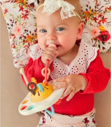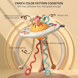 Scopri il giocattolo sensoriale multifunzione a forma di UFO, che unisce mordibimbo, sonaglino e cordicelle interattive da “tirare”. Supporta lo sviluppo della motricità e della coordinazione, stimola vista, udito e tatto e al tempo stesso dà sollievo durante la dentizione. Materiali sicuri senza BPA e facile manutenzione lo rendono una scelta ideale per i bebè dai 6 mesi in su.
