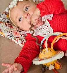 - Sollievo durante la dentizione – superfici diverse da mordere e per massaggiare le gengive.