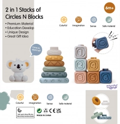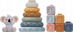 Questo gioco educativo multifunzione 3in1 del brand WOOPIE include sei anelli impilabili sormontati da una simpatica figurina di koala e sei morbidi cubi in silicone con numeri e immagini in rilievo. Grazie alla struttura piacevole e flessibile, si impugna perfettamente dalle manine dei bambini e funge anche da massaggiagengive sicuro. Il set è ideale per il gioco quotidiano a casa e nella vasca da bagno.