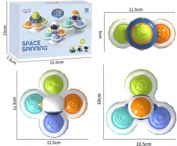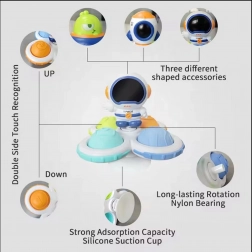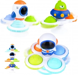 Scopri il set colorato di tre spinner sensoriali WOOPIE BABY con motivi di astronauta, razzo e alieno. I bambini possono far girare lo spinner, premere i pulsanti in silicone con diverse texture e numeri ed esplorare forme e colori. La ventosa in silicone garantisce un fissaggio stabile su superfici lisce, mentre i cuscinetti di qualità permettono una rotazione prolungata. Ideale da 18 mesi per lo sviluppo della motricità fine, la stimolazione sensoriale e la concentrazione.