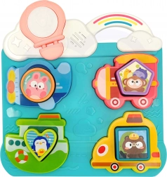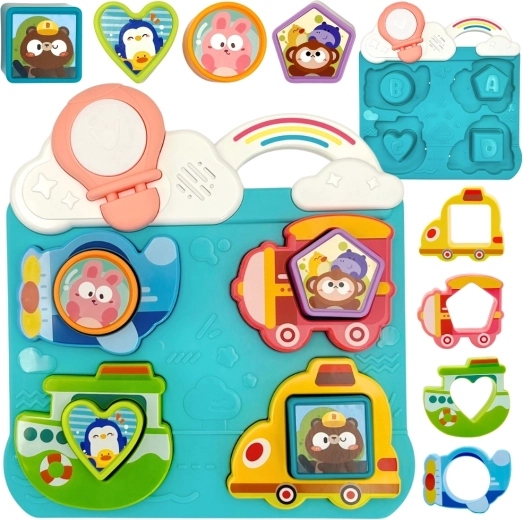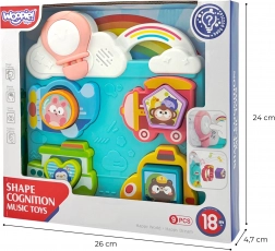Elementi giocosi come colori vivaci, suoni e elementi interattivi incoraggiano i bambini ad apprendere giocando e allo stesso tempo sviluppano le loro abilità manuali e la capacità di riconoscere forme e colori.