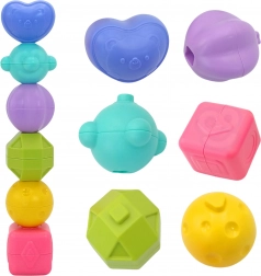 Le forme da inserire con campanellini nascosti motivano a ripetere l’attività. Favoriscono il riconoscimento di forme e colori e rafforzano la coordinazione mano–occhio.