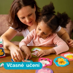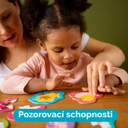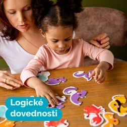 Scopri il mondo della fattoria con semplici puzzle sagomati, perfetti per il primo approccio ai puzzle. Ognuna delle 8 immagini è composta da 2 pezzi robusti che si incastrano facilmente. I bambini allenano la motricità fine, il pensiero logico e il riconoscimento degli animali.