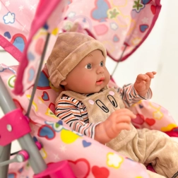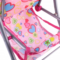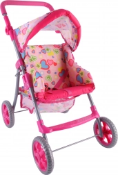 Il passeggino leggero e stabile per bambole del marchio Woopie farà felice ogni piccola mamma. Ha un maniglione regolabile, una capottina pieghevole, cinture di sicurezza e un pratico cestino per gli accessori. Grazie alle ruote in schiuma silenziose è ideale in casa e per le passeggiate e, dopo il gioco, si ripiega facilmente per risparmiare spazio. Il design stiloso con cuoricini conquisterà i bambini.