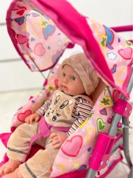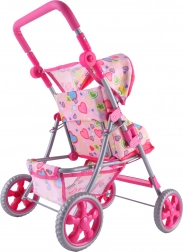 La cappottina protegge la bambola dal sole e il cestino inferiore contiene tutti i tesori dei bambini.