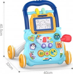 Scoprite divertimento e apprendimento insieme al girello interattivo del marchio Woopie. Questo girello è dotato di una lavagna da disegno che stimola la creatività del bambino, permettendogli di creare proprie illustrazioni e disegni. Inoltre, l'elefante interattivo riproduce allegre melodie alla pressione dei tasti, garantendo ulteriore divertimento.