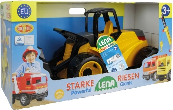 Il modello Giga Trucks è realizzato in plastica riciclata con aggiunta di segatura di legno, il che riduce l'impronta ecologica e al tempo stesso garantisce un aspetto piacevolmente opaco e maggiore robustezza. La grande lunghezza di 75 cm assicura stabilità, presa facile e tanto spazio per il gioco di fantasia.