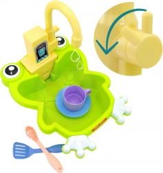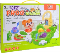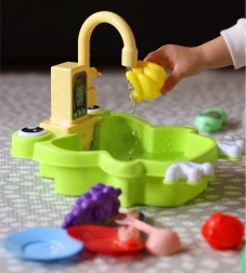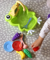 Il lavello Ranocchia è un fantastico giocattolo interattivo che trasforma le attività quotidiane in cucina in un gioco divertente. Il rubinetto realistico con circolazione dell’acqua, dopo aver versato l’acqua nel lavello e inserito le batterie, imita il vero lavaggio di stoviglie e frutta. Grazie al simpatico design a rana, attira subito l’attenzione dei bambini e li motiva a esplorare.