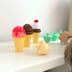 Set Gelatiere sviluppa la fantasia e la creatività dei bambini, permettendo loro di assumere il ruolo di pasticciere e cliente. Include tutti i pezzi necessari per creare un'esperienza perfetta di gelato. Il bambino prenderà un cono, raccoglierà una pallina di gelato e la disporrà come desidera.