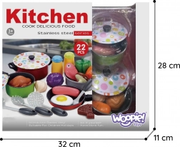 Con il set WOOPIE, il tuo bambino avrà una cucina in miniatura: pentole con coperchi, padella, ciotola, spezie e una ricca selezione di alimenti, dall’uovo e salsiccia al pesce, verdure e bistecca. Grazie alla realizzazione realistica e ai colori vivaci, stimola immaginazione, motricità fine e abilità sociali nel gioco del cucinare.