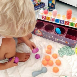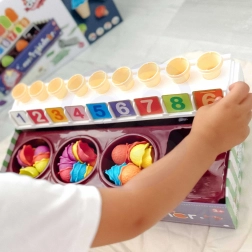 Il giocattolo permette di apprendere numeri e colori attraverso attività di impilamento e classificazione.