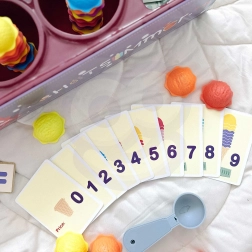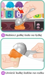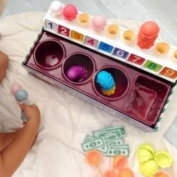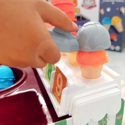 Comprende palline di gelato, coni, carte d'ordine e soldi, incoraggiando il calcolo e il gioco di fantasia.