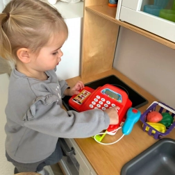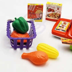 Il gioco sviluppa in modo naturale le basi di matematica, comunicazione, creatività e motricità fine. Sono inclusi anche un cestino e alimenti in plastica (ad es. peperone, mais o coscia di pollo), rendendo il role-play ancora più realistico.