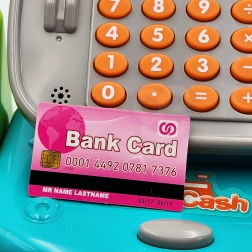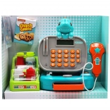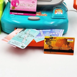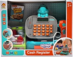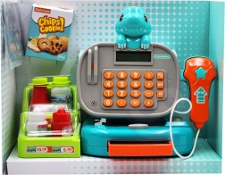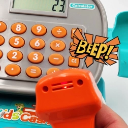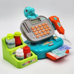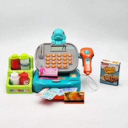 Crea un negozietto in casa con la cassa per bambini WOOPIE DINO in versione blu. I bambini possono “scansionare” i prodotti con lo scanner dai suoni realistici, inserire il prezzo sulla vera calcolatrice e pagare con monete, banconote o carta. È inclusa anche una pratica mensola per la merce, che rende il gioco ancora più autentico.
