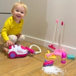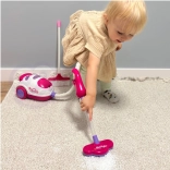 Aspirapolvere rosa con dettagli realistici, come i pulsanti, che dà ai bambini la sensazione di fare vere pulizie.