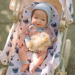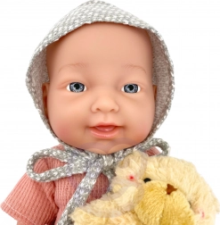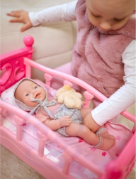 La bambola imita facilmente un vero bebè: braccia e gambe sono mobili e il ciuccio si inserisce comodamente in bocca per calmare e per il gioco della nanna.