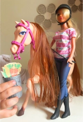 Sia la bambola che il cavallo hanno capelli lunghi e folti, che offrono possibilità illimitate per creare acconciature e styling.
