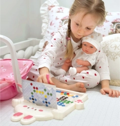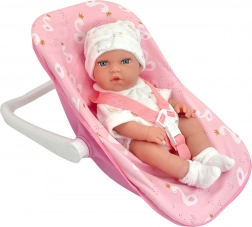 WOOPIE Royal bambola per bambini è il compagno ideale per i vostri giochi! La bambola è vestita in un bellissimo completo, comprese calzini e cuffietta. Il set include un magico marsupio rosa. I bambini sviluppano creatività e imparano l'empatia giocando ruoli.