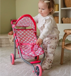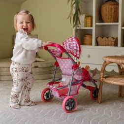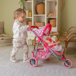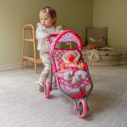 Questo passeggino rosa a tre ruote per bambole è ideale per bambini dai 3 anni che amano il gioco realistico della famiglia. Il telaio in metallo, leggero ma robusto, e la maneggevolezza confortevole garantiscono una guida sicura e fluida sia in casa sia all’aperto. Il rivestimento con cuoricini piacerà a ogni piccola premurosa e si pulisce facilmente: i tessuti sono removibili e lavabili.